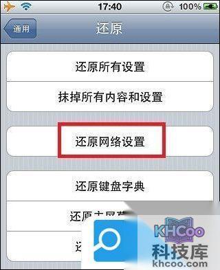 2. 苹果手机:依次点击手机的“设置”→“通用”→“还原”→“还原网络设置”;