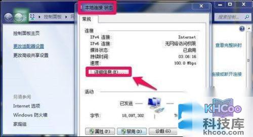 在网络和共享中心中点击你连接的连接!