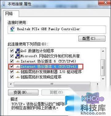 3、在打开的“本地连接 属性”对话框中选择“Internet协议TCP/IP”,再单击“属性”按钮: