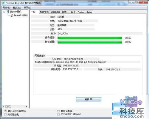 PC端使用的是300M无线网卡,室内连接信号强度和信号质量还不错。