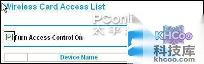 然后按‘Add’,界面回退回到上一级菜单,再将Turn Access Control On 选择上,然后按‘Apply’,那么之后只能是在该列表中记录了的无线电脑才可以连接该无线路由器了。