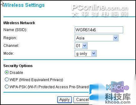 在WGR614v6的Setup菜单中,选择‘Wireless Settings’: