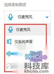 选择的 录制音频 有仅麦克风、仅系统声音、麦和系统声音和以及不录音频选项。