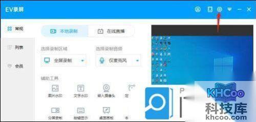 2、进入到EV录屏主页后,点击右上方的设置图标;