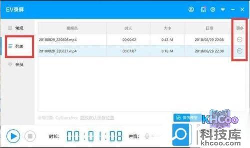 录制结束,视频文件会在列表中显示,点击“更多”,可以查看文件所在位置、进行重命名操作。