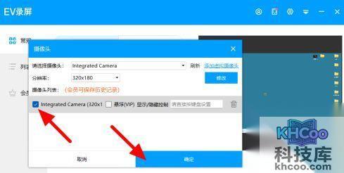 2、然后选择找到并点击电脑的 摄像头设备 ,点击一下确定的按钮。