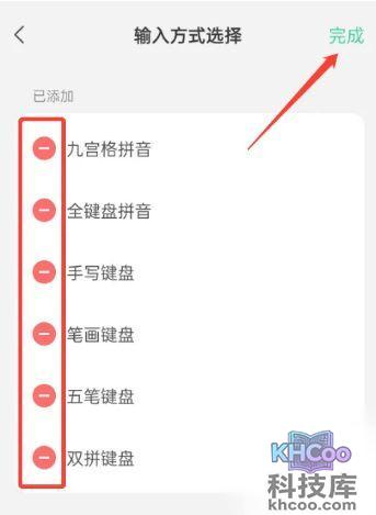 3、进入编辑模式,点击“减号”图标删除不需要的输入方式。