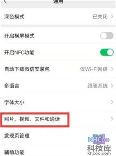 我们进入通用之后,然后我们点击里面的照片,视频,文件和通话的功能。