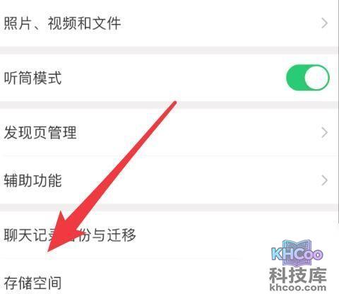 4、在微信【通用】页面中,点击【存储空间】选项。