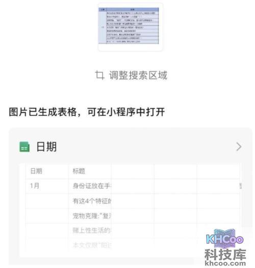 4、可以调整转换为电子表格的区域,也可以在小程序中找到该电子表格。