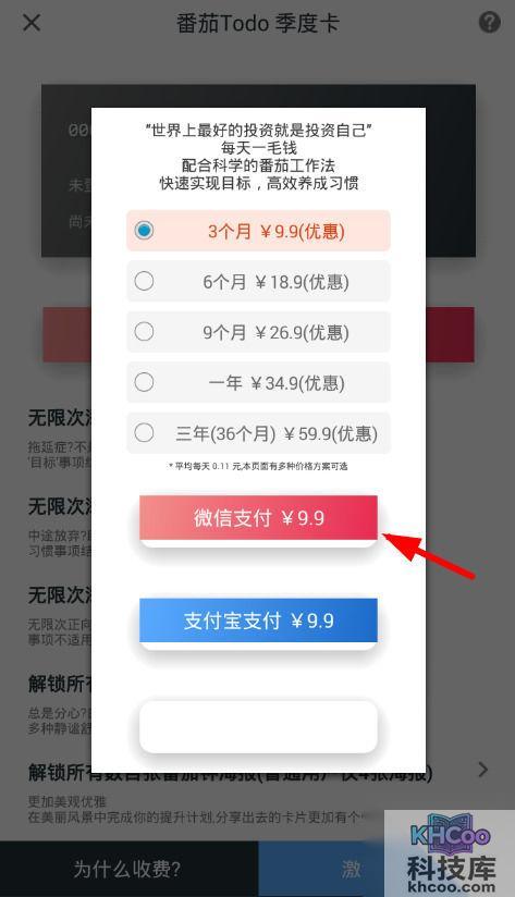 3、其中可以选择“微信支付”或者“支付宝支付”两种方式进行充值,让大家能更好的使用番茄todo。