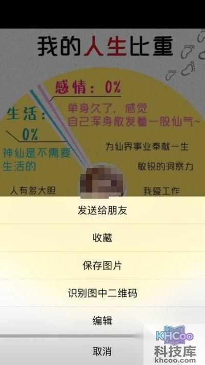 在进入测试页面后,大家需要做三道题目,这样就会给出我的人生比重测试结果,大家可以通过下方按钮将图片保存或转发到微信群,感兴趣的朋友都可以来试试!