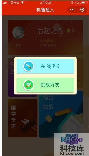 3、之后就可以选择玩法,是进行“在线pk”或者“挑战好友”,其实小程序类型和头脑王者差不多,大家感兴趣的话可以来试试哦!