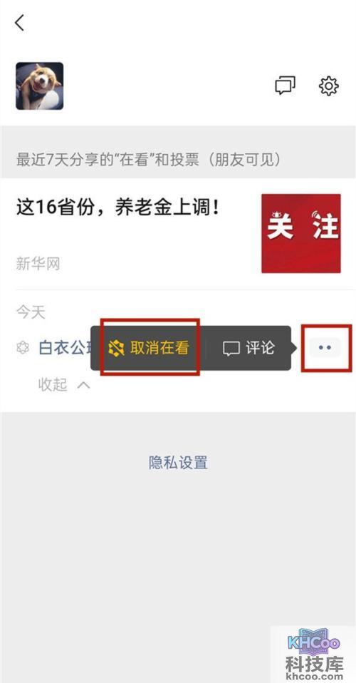 3、点击正在看的文章下面两点后,点击取消在看。