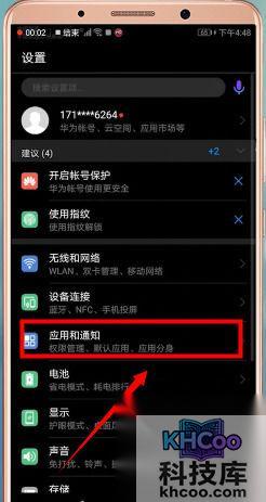 然后点击【应用和通知】-【权限管理】