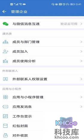 跳转管理企业界面,点击一下与微信消息互通。