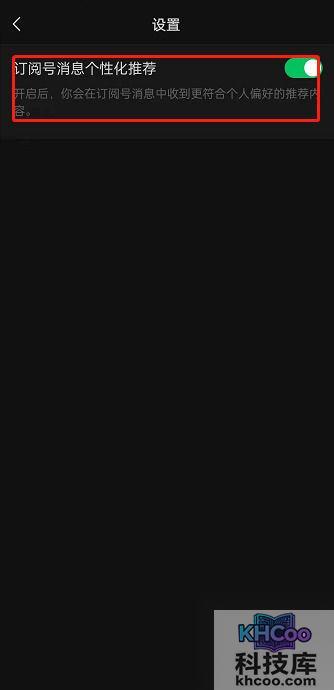 3、将【订阅号消息个性化推荐】右侧按钮开启即可。