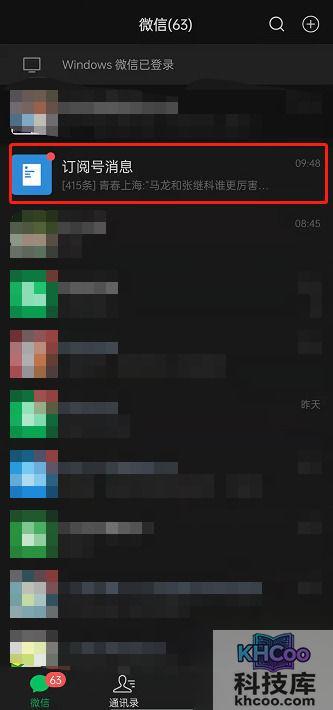 1、在微信页面中找到【订阅号消息】。