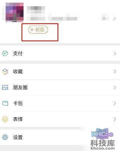 在这里,大家就可以看到头像下面出现了【+状态】字样,点击进入。