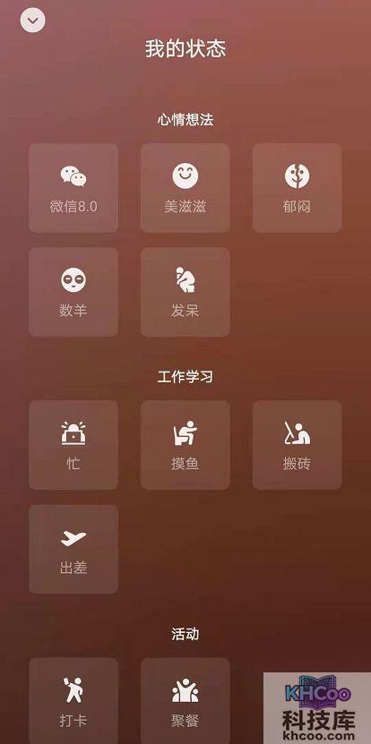 打开微信APP,点击我的页面中头像下方的状态开始设置。