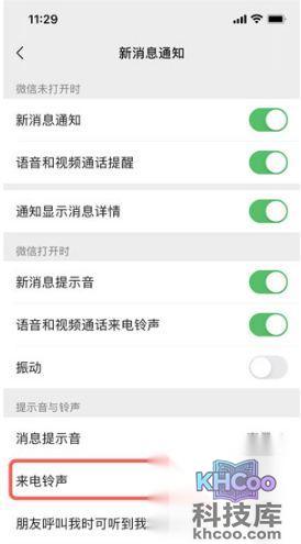 5、iOS用户在新消息提醒页面,点击【来电铃声】进入修改;