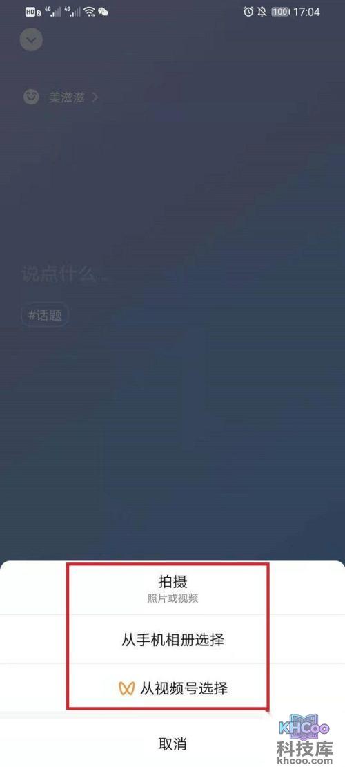 3、然后在弹出的选项中可以选择手机相册的照片,也可以选择拍摄照片还有视频号。