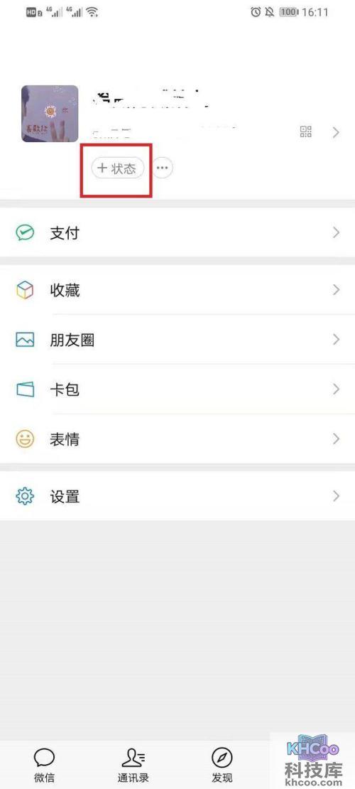 1、首先用户需要打开微信,然后在【我】界面中点击【状态】功能,进入到选择状态页面;