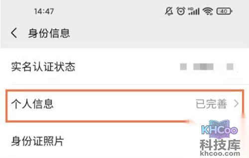 3、点击身份信息。
