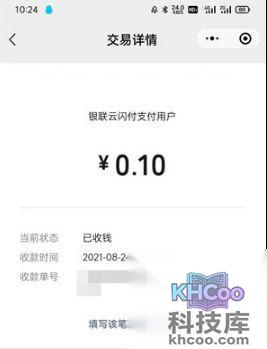 5、支付完成后,商家查看到的付款信息为“银联云闪付支付用户”。