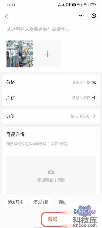 6、同时还有其他相关的设置,例如价格、库存、分类、商品详情等等,可通过【预览】提前查看展示效果;
