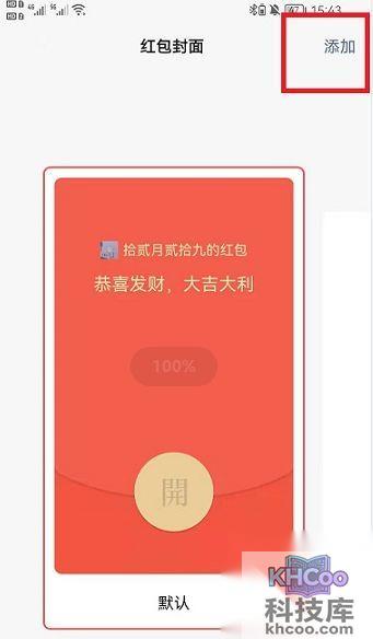 3、红包封面功能页面中,点击上方的【添加】就会进入到添加微信红包封面的界面中;