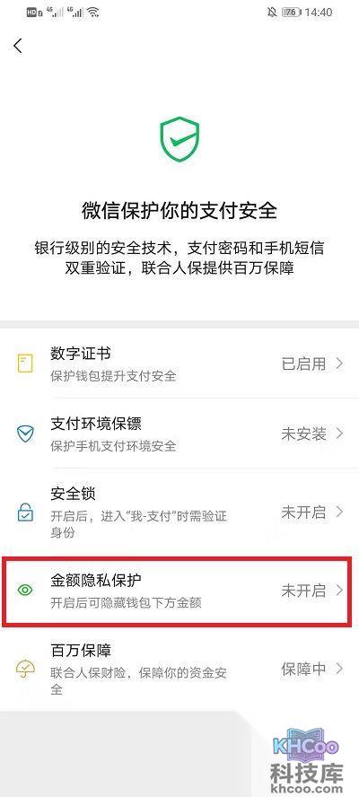 5、在【安全保障】界面中点击下方的【金额隐私保护】进入到其中;