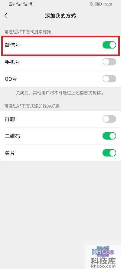 5、在界面中点击关闭【微信号】右边的按钮。