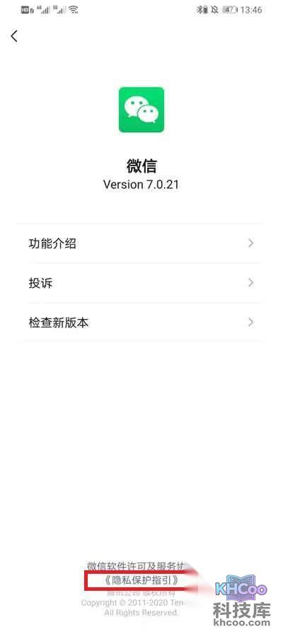 4、在关于微信界面,点击下方的【隐私保护指引】进入到隐私保护条款文章中;