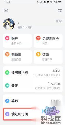 2、在我的界面中找到【读过和订阅】选项;