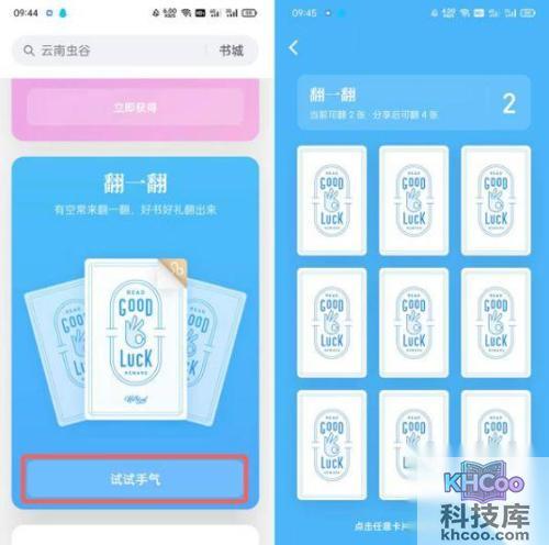 在【阅读】界面上下滑动找到翻一翻活动,点击活动中的任意卡片,有几率获得无限卡,当然也有可能是免费获得的书籍;