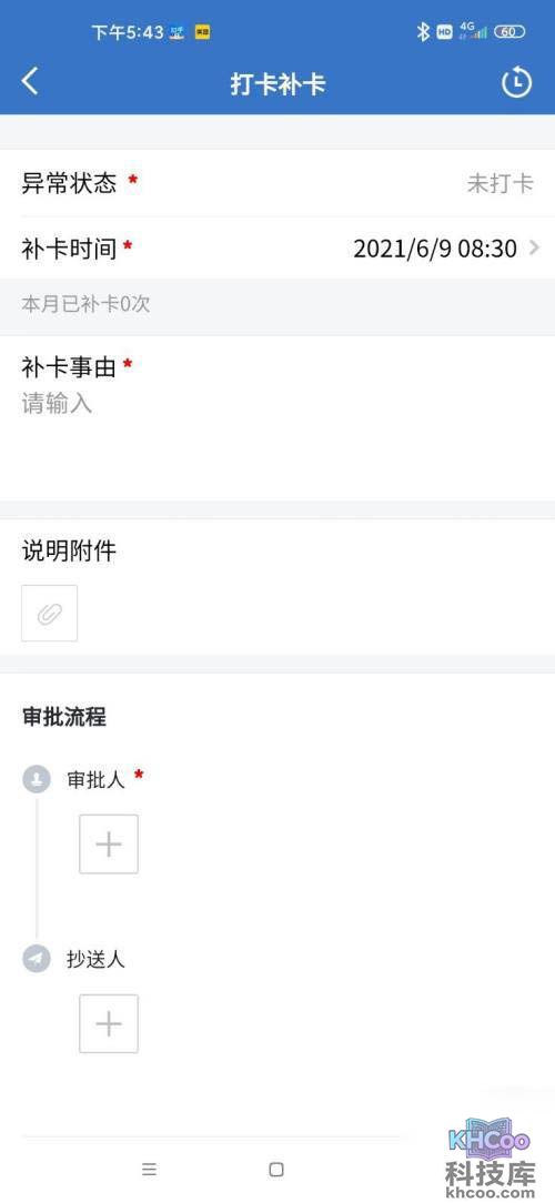 3、点击缺卡的日期,点击补卡申请,填写信息并提交申请即可。