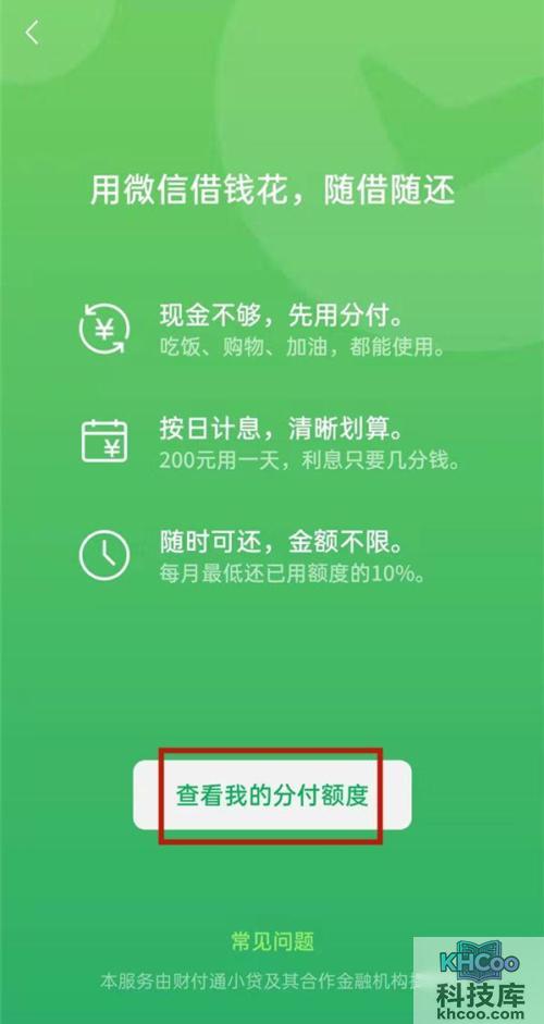 3、点击分付后,点击查看我的额度即可开通。