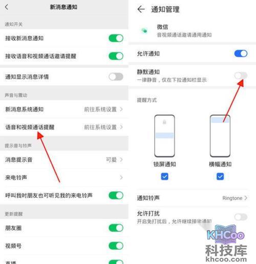 3、点击【语音和视频通话提醒】,将【静默通知】右侧开关打开即可。