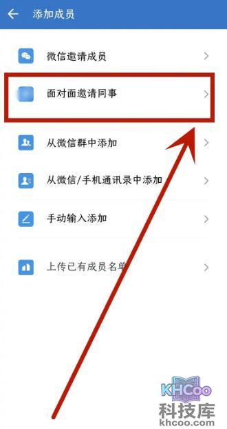 在添加成员界面,选择想要邀请新同事的方式,以面对面邀请为例,点击进入。