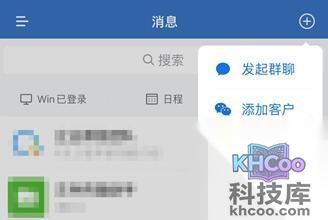 1、第一种方式:打开下载好的企业微信,点击右上角的“+”图标