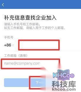 6、在页面中填写“手机号和工作 邮箱 ”点击“下一步”等待通过即可加入啦