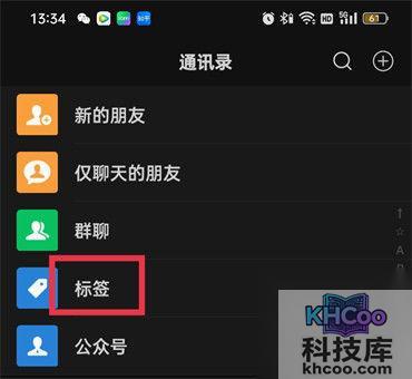 2.在通讯录的页面当中找到【标签】点击;