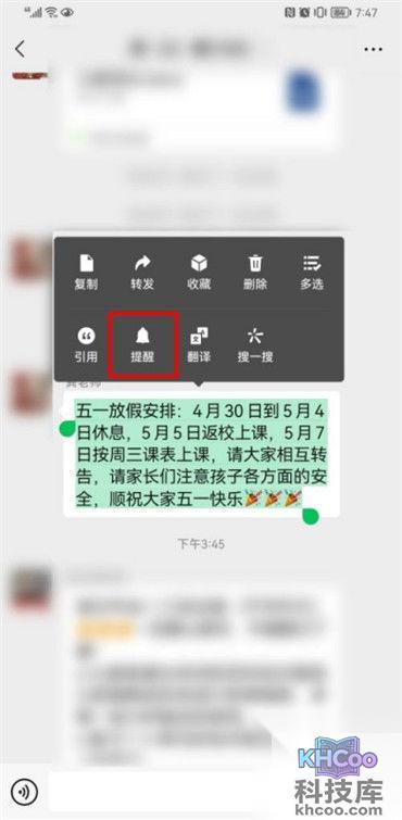 1.首先我们要打开微信软件进入到微信的主页面中去,然后点击一个好友进入到和好友的聊天页面,然后长按提醒的内容后之后点击对话框中的【提醒】;