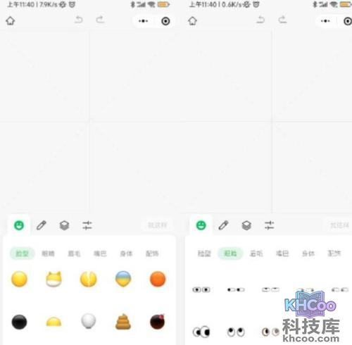 接下来,让我们看看素材方面。目前这款小程序基本上是基于微信黄脸表情中的元素进行自定义的,微信为用户提供了脸型、眼睛、眉毛、嘴巴、身体、配饰共计六大类表情素材,每一类至少有数十种选择。整个编辑页面操作是傻瓜式的,素材的数量也没有限制,总之所有素材往上加就完事了。