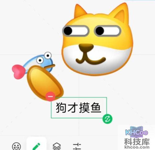 添加一个手部 动作 ,然后再利用一些抽象的素材拼出一条鱼来,这样就完成了我们“狗才摸鱼”表情包的基础。