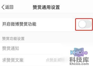 4、开启微博赞赏功能右侧开关。