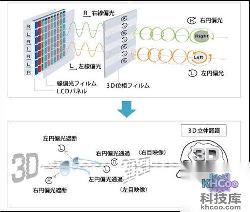 偏光式3D是利用光线有“振动方向”的原理来分解原始图像的,先通过把图像分为垂直向偏振光和水平向偏振光两组画面,然后3D眼镜左右分别采用不同偏振方向的偏光镜片,这样人的左右眼就能接收两组画面,再经过大脑合成立体影像。