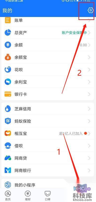 第一步:进去支付宝我的界面,点击上方齿轮设置图标