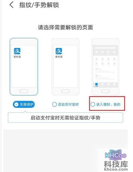 第四步:进去解锁设置之后,选择进入理财、我的界面需要解锁